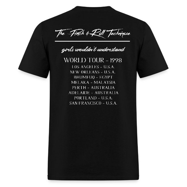 ![]() ![]() | P&RT – The Pinch & Roll Technique On-Screen Shoegaze AltRock Cover Band Authentic Stage Crew Gear from our 1998 World Tour Our new hit single, “Girls Wouldn’t Understand” (1998), out now on CD and Vinyl – check it out, and rock on… |